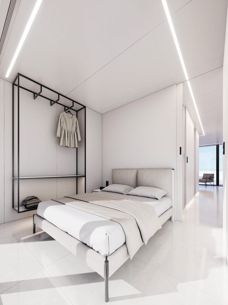 Two independent rooms with floor-to-ceiling windows, smart home integration, and custom furniture, designed for ultimate comfort.